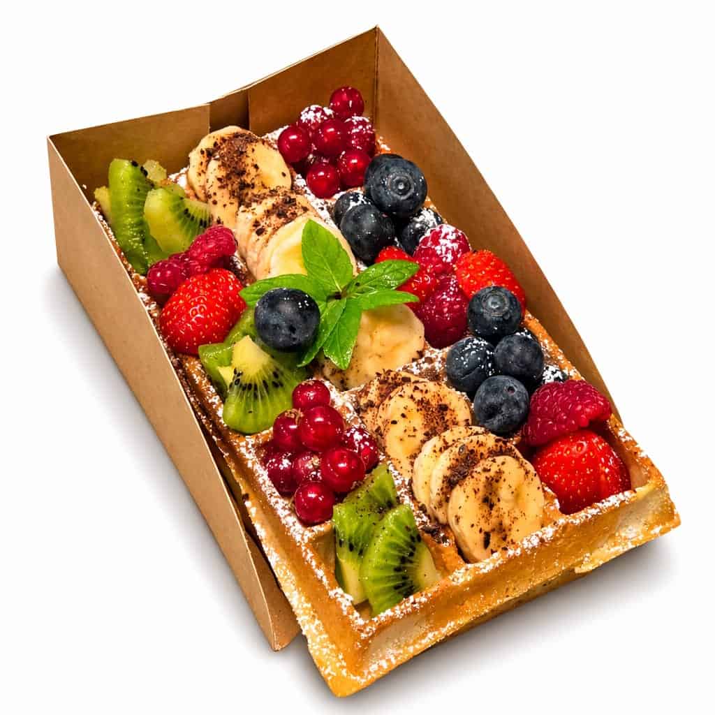 This waffle packaging allows the waffle to be presented horizontally. It makes it easier to add toppings and improves the customer’s experience when enjoying waffles on the go.